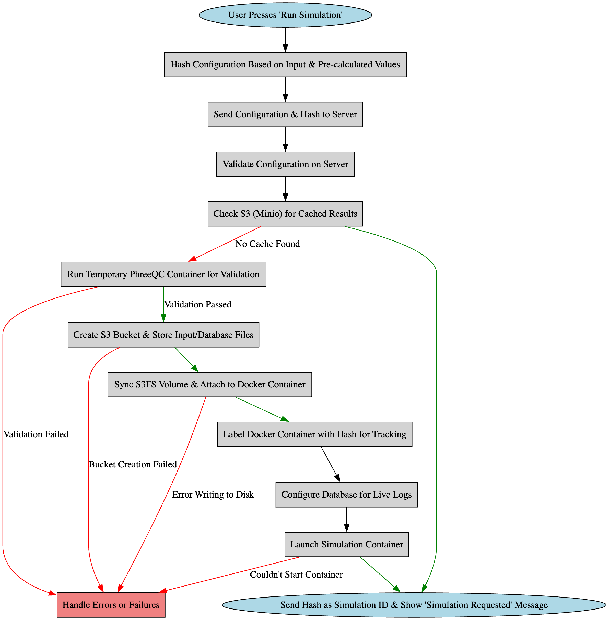 Once all configurations are set and verified, initiate the simulation by clicking the “Run Simulation” button at the bottom of the interface. Upon execution, SoilTool will first check for any previously cached simulations with matching parameters to optimize computational efficiency. If no prior results exist, the system will validate the configuration, flagging any errors or immediate failures. If the setup is valid, the primary computational process will be launched, with all output files systematically synchronized to the designated S3 storage on the backend.